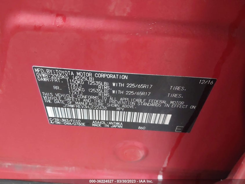 VIN:JTMWFREV3HJ122438