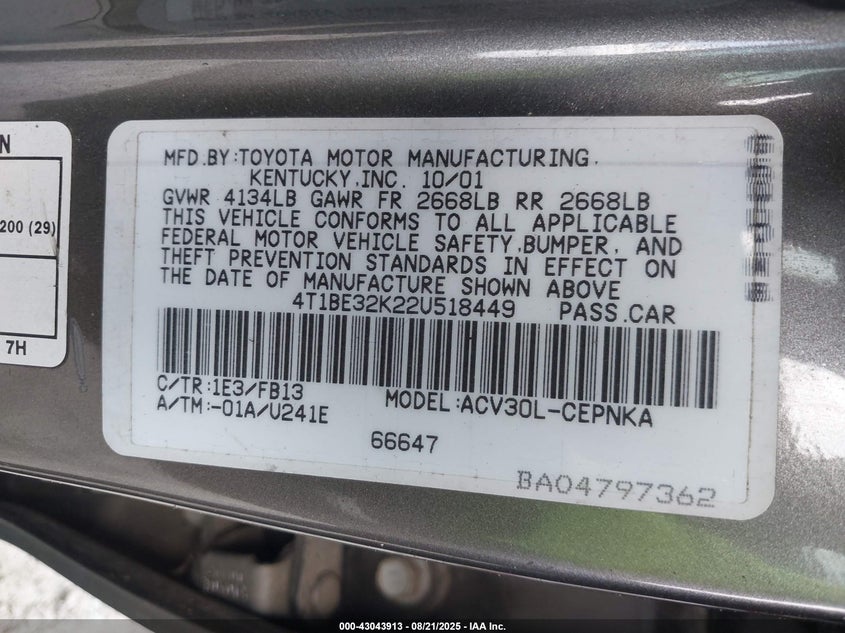 VIN:4T1BE32K22U518449