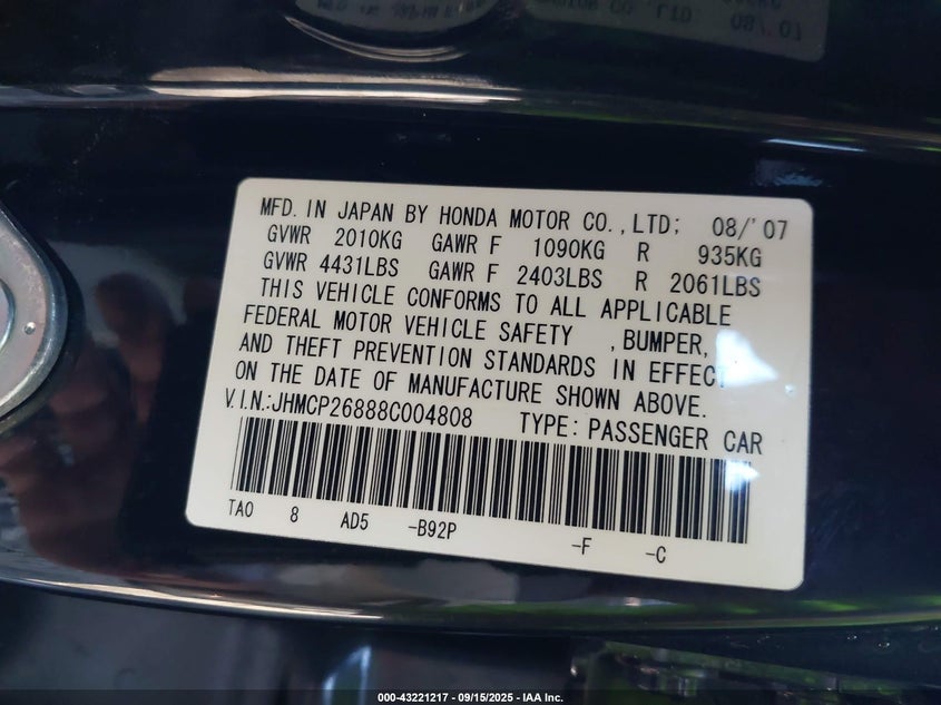 VIN:JHMCP26888C004808
